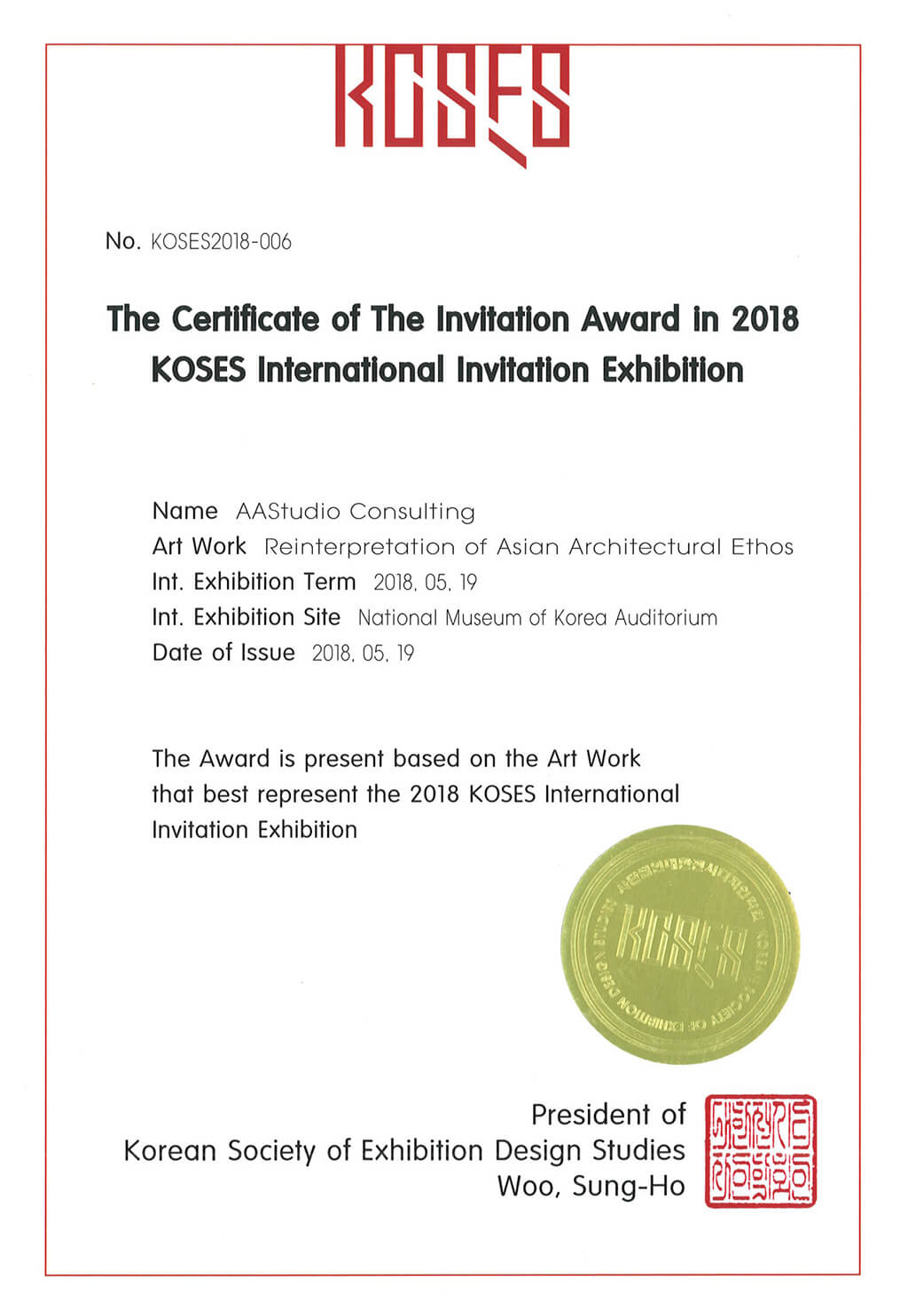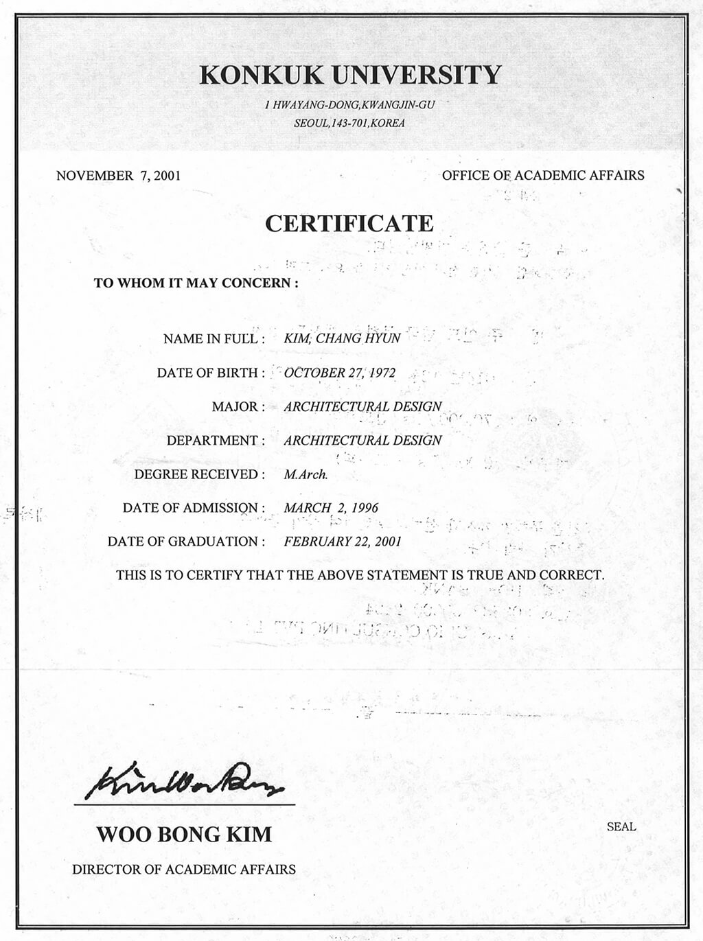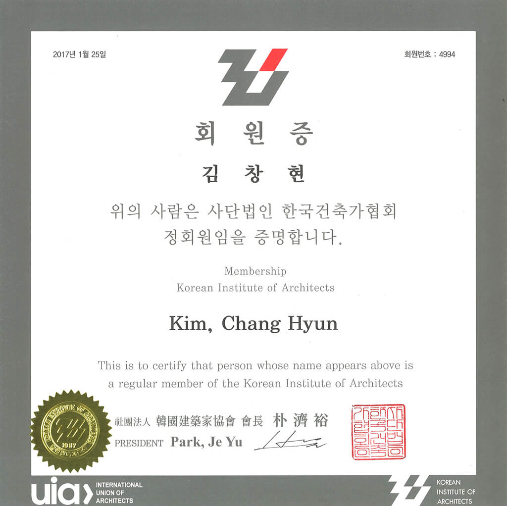 Certificate Membership Korean Inst of Architects